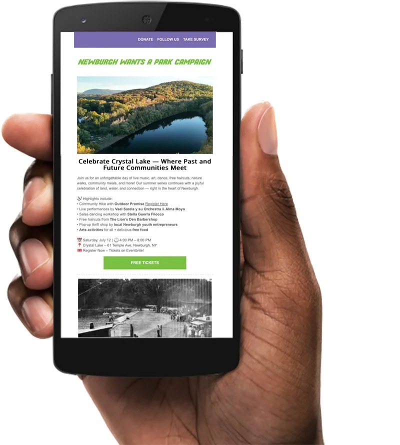 Through strategic design and community-centered messaging, 7ONE8 DESIGN helped Newburgh Wants a Park: